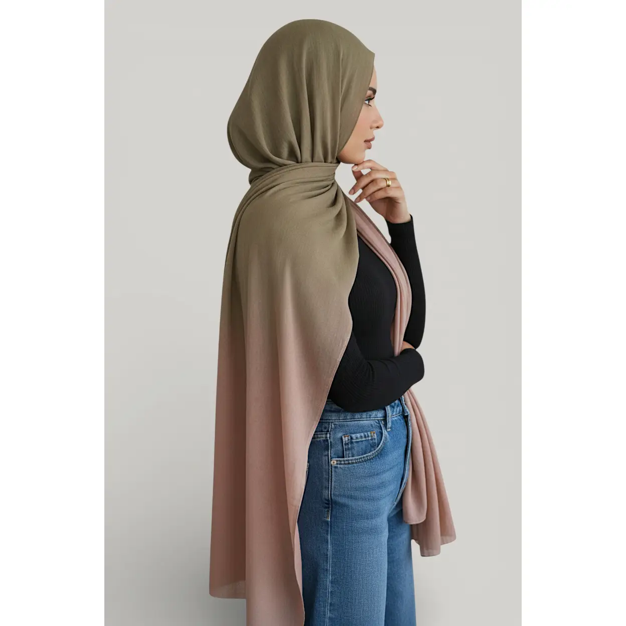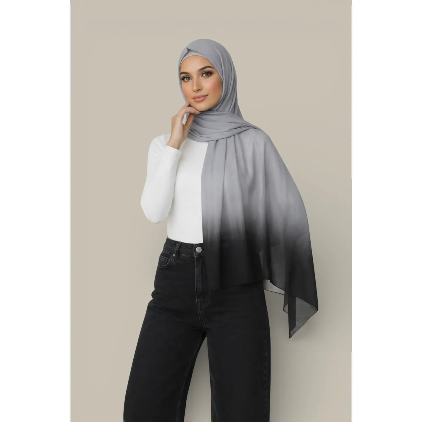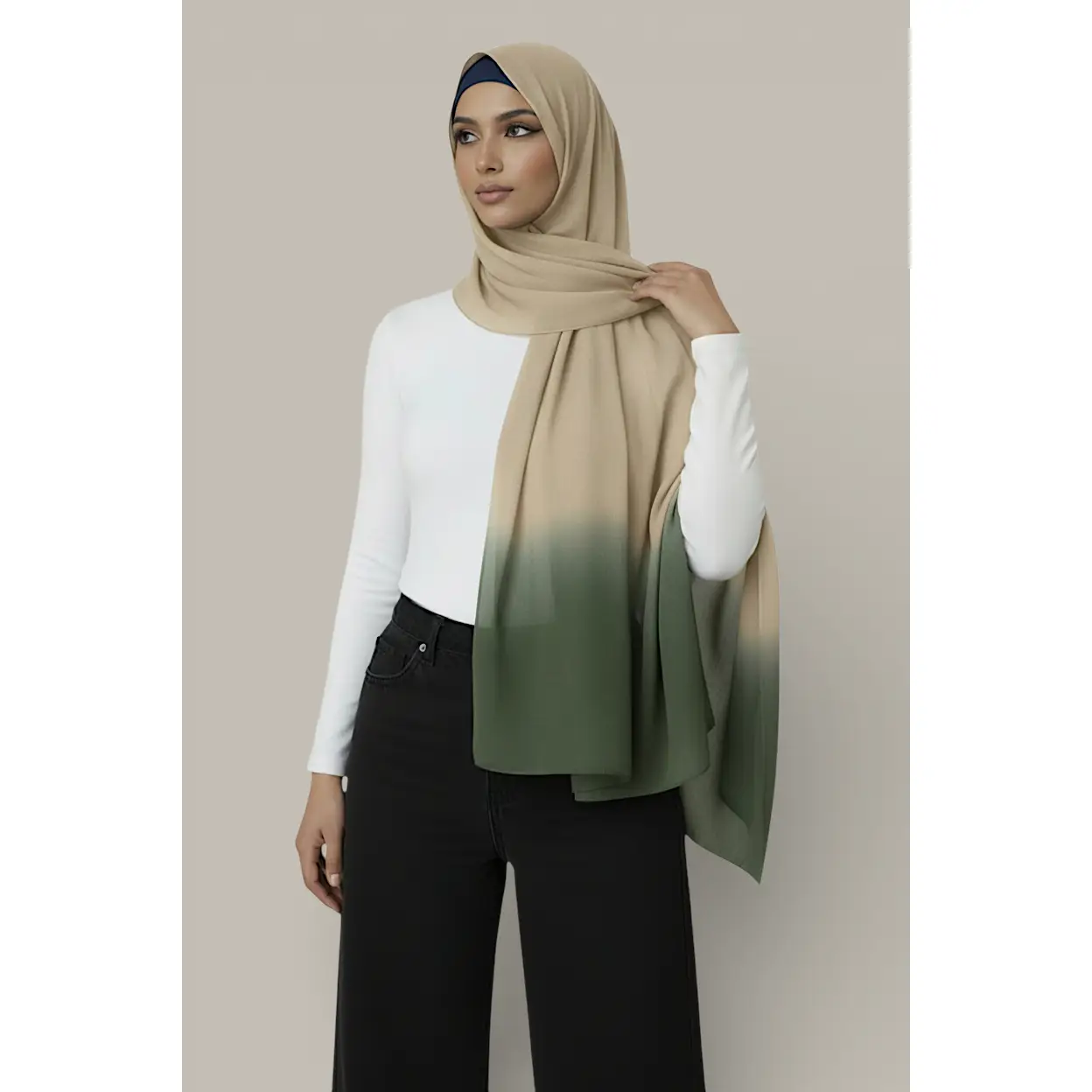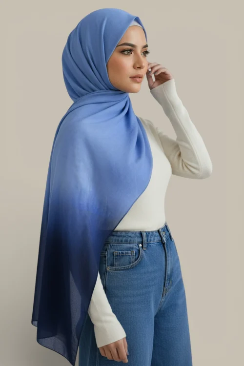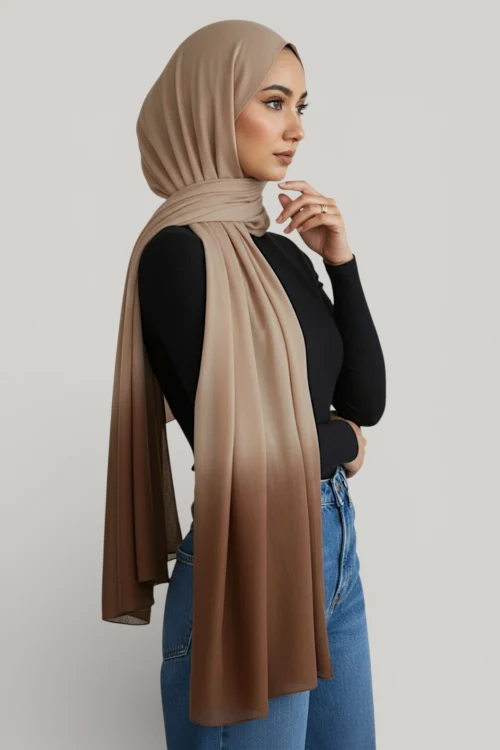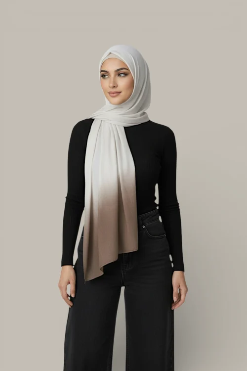 Featuring a subtle ombre dip effect, this scarf adds depth and colour while remaining elegant and easy to style. Designed for hijab wear, neck styling, or special occasions, it provides generous coverage and all-day comfort.